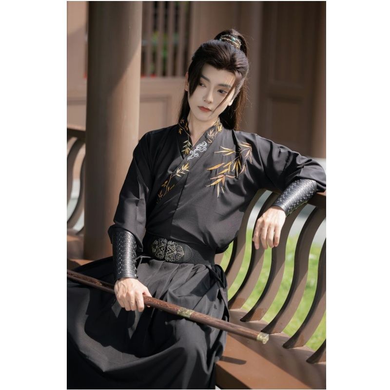 漢服男性中国風古代風武侠剣士男性大きいサイズ公子古代衣装黒横暴女子学生クラス制服春