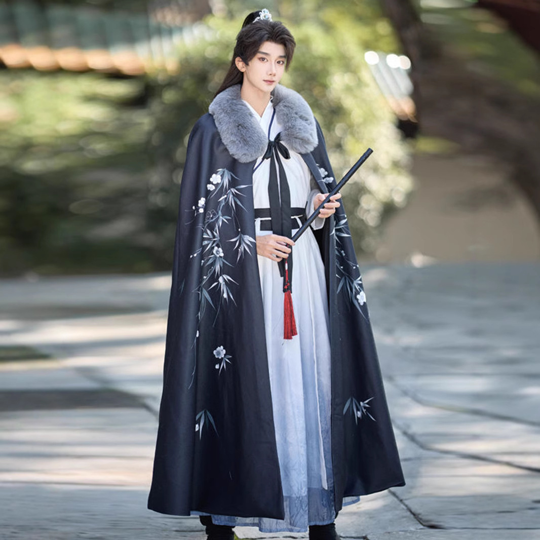 オリジナルの漢服とベルベットの厚手のマントの男女同型の中国風のロングコート古風保温マント冬