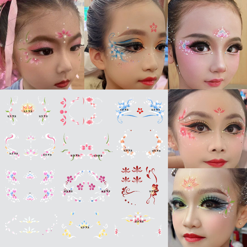 古風の花の眉毛の心は花のの刺青を貼ります。