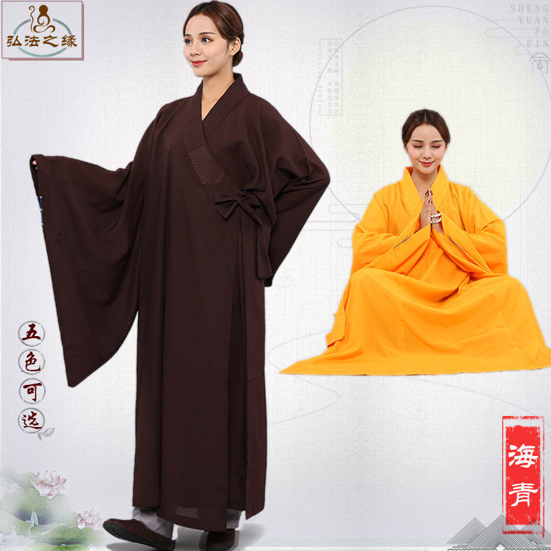 サテン梵海青居士服女性春秋金長衣大衣四季男女金高級和