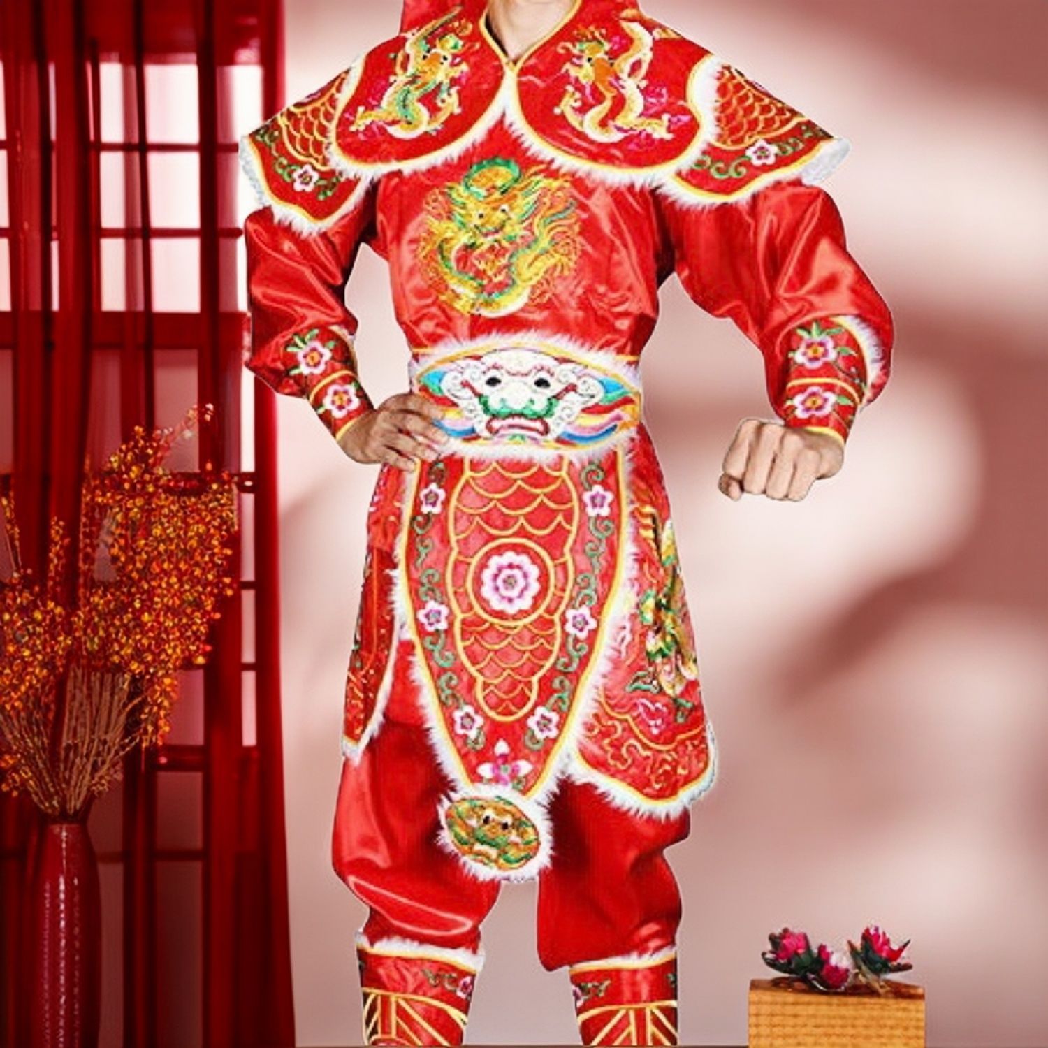 潮汕英歌舞服飾遊神刺繍戦甲マント帽子セット