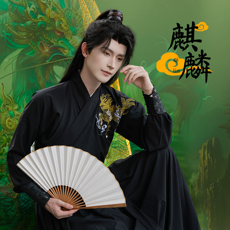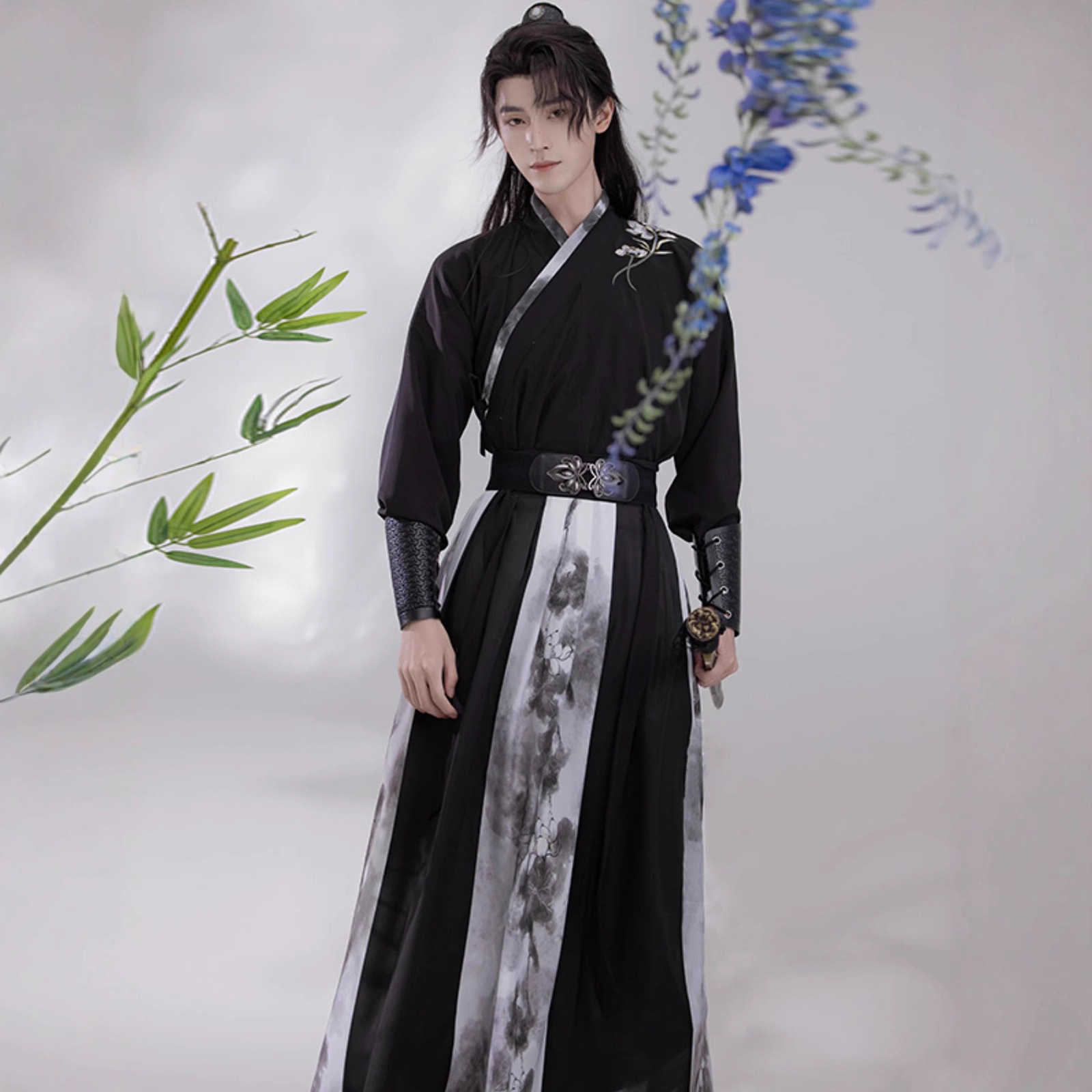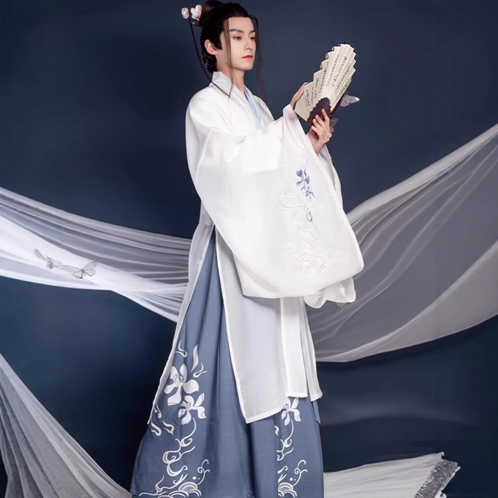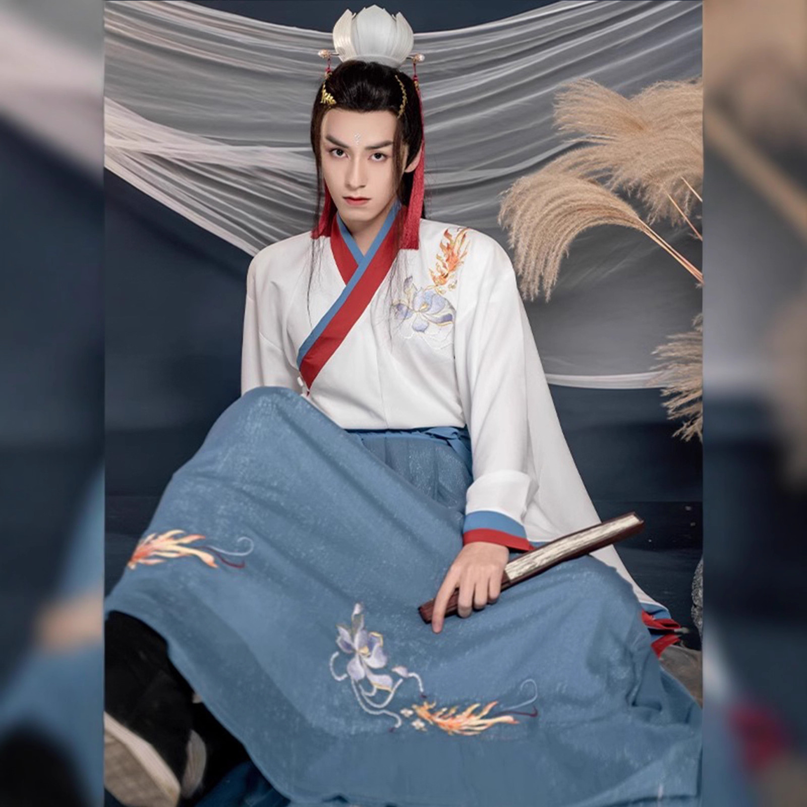 新中国式漢服男中国風刺繍交襟上着箔押し馬面スカートイケメン息子武侠風cpスーツ