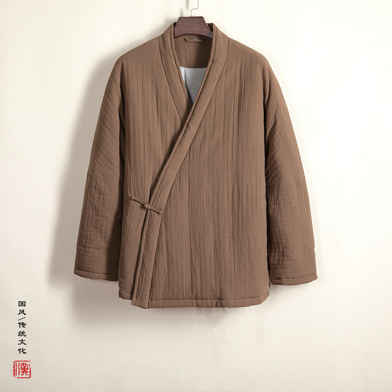 2024冬服新型中国風メンズ綿麻リネンジャカードメンズレトロ改良汉服コットンコートメンズ