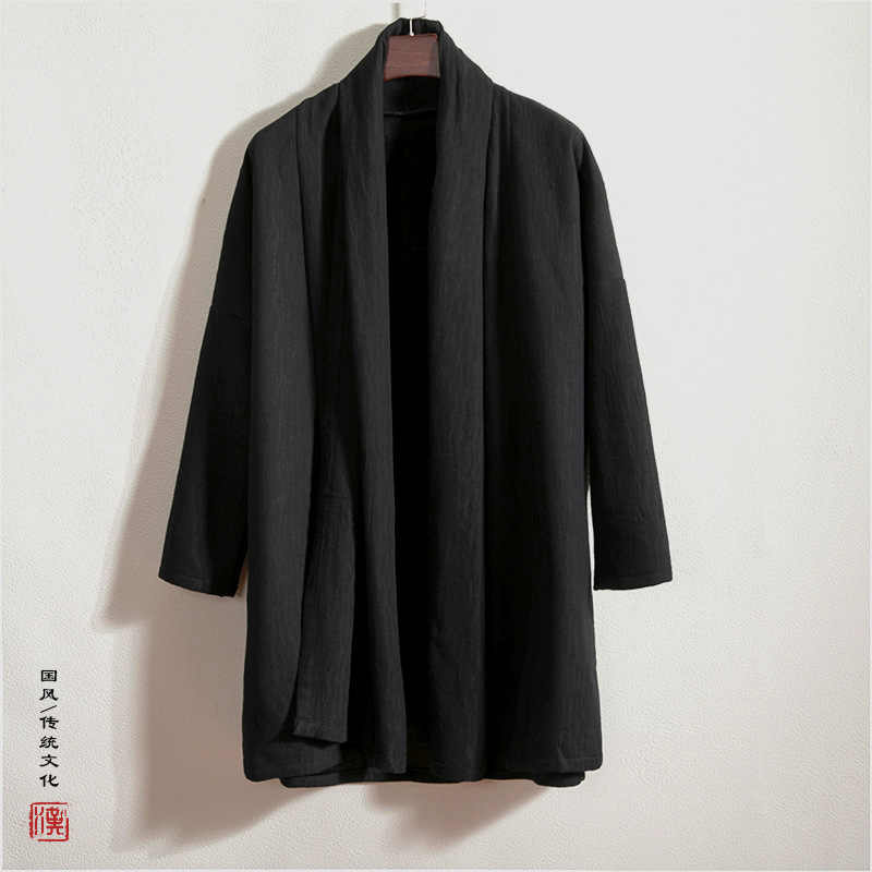 2024秋冬新作中国風メンズ綿麻亜麻ジャカード改良漢服加毛新中国式カーディガンコート
