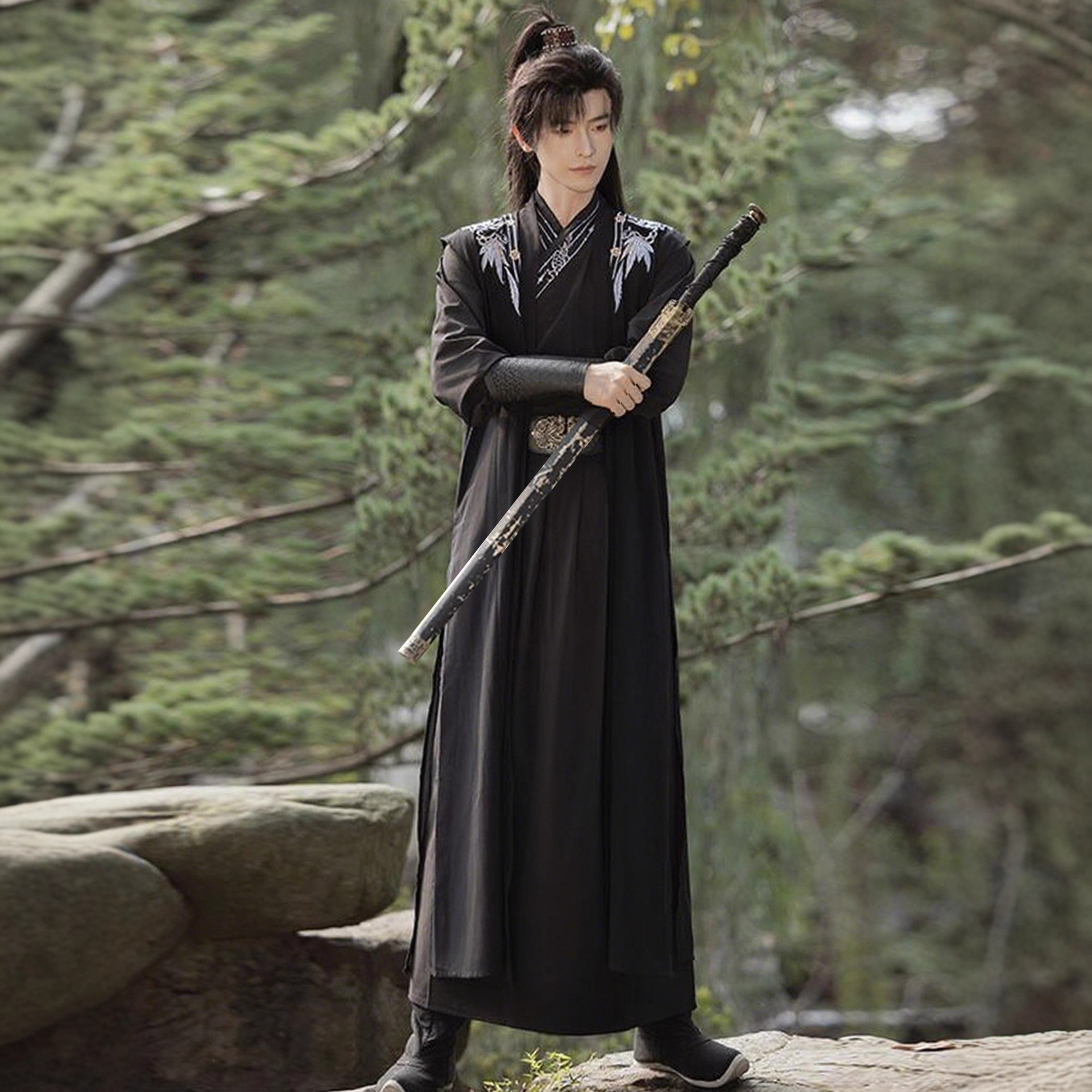魏晋風漢服男性用2025年新作中国風刺繍演出服、侠客仙気漂うエレガントな古装フルセット