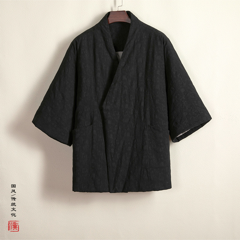 2023夏の新型男性綿麻カーディガンの道着コートの漢服は日本の純色のゆったりとした綿麻の半袖コートです。
