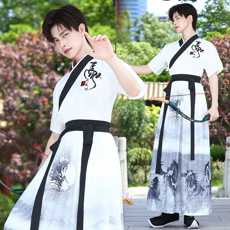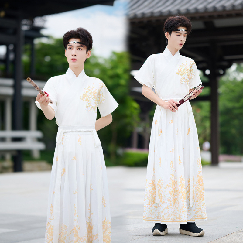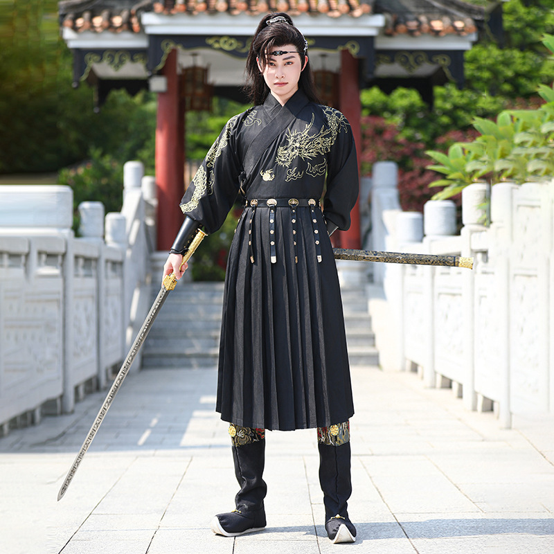 中国風刺繍男性式漢服宋製龍紋ジャカード上着漢要素民族風二重刺繍スカート