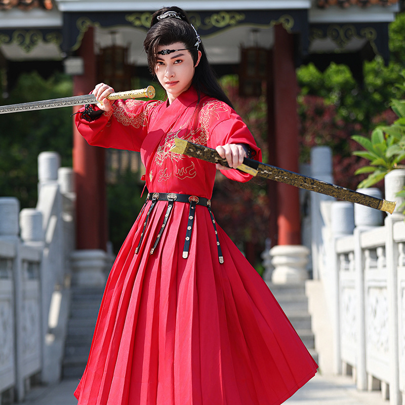 オリジナル漢服2024新型男女学生春秋冬侠客風刺繍改良唐背子交襟八破スカート