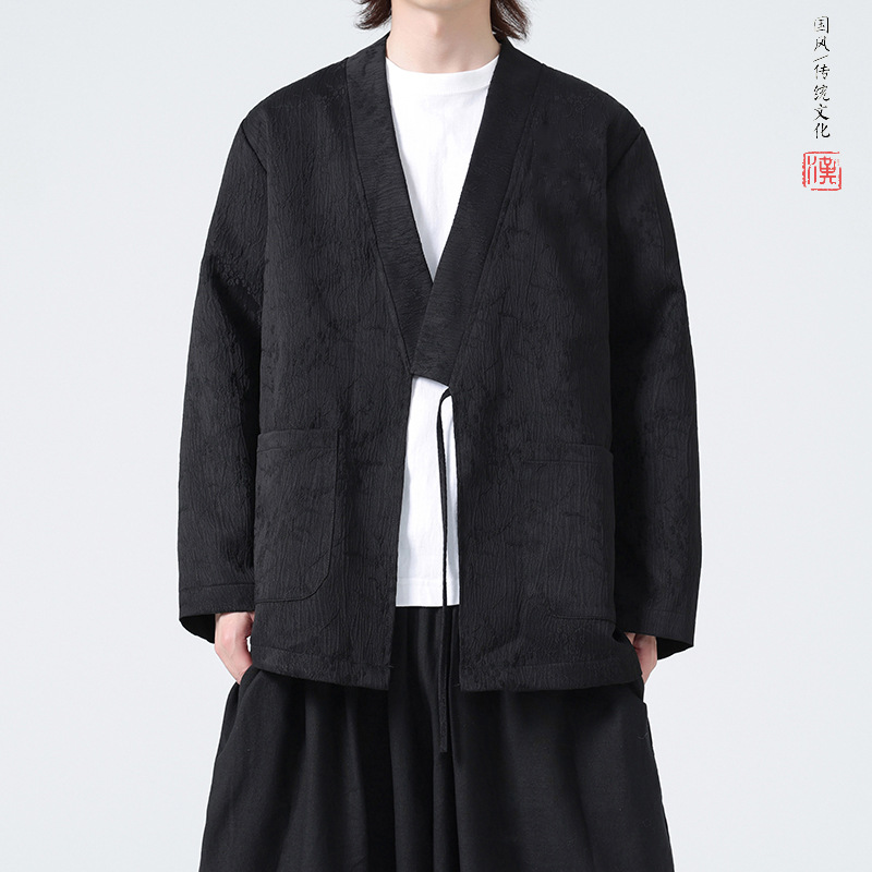 2024秋装新型中国風男装復古潮流ジャカード男性改良新中国式漢服道服コート