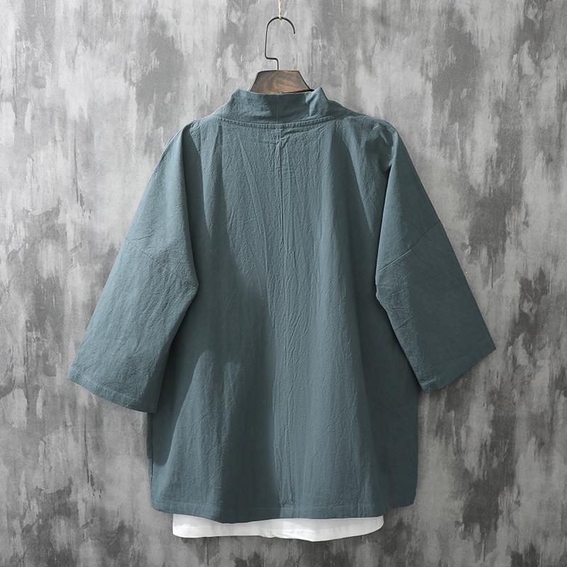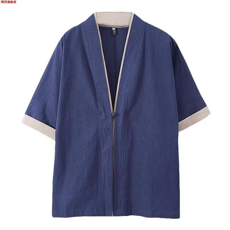 夏の新型中国風男性七分袖カーディガン純色漢服シャツレトロ大サイズ道服唐服上着