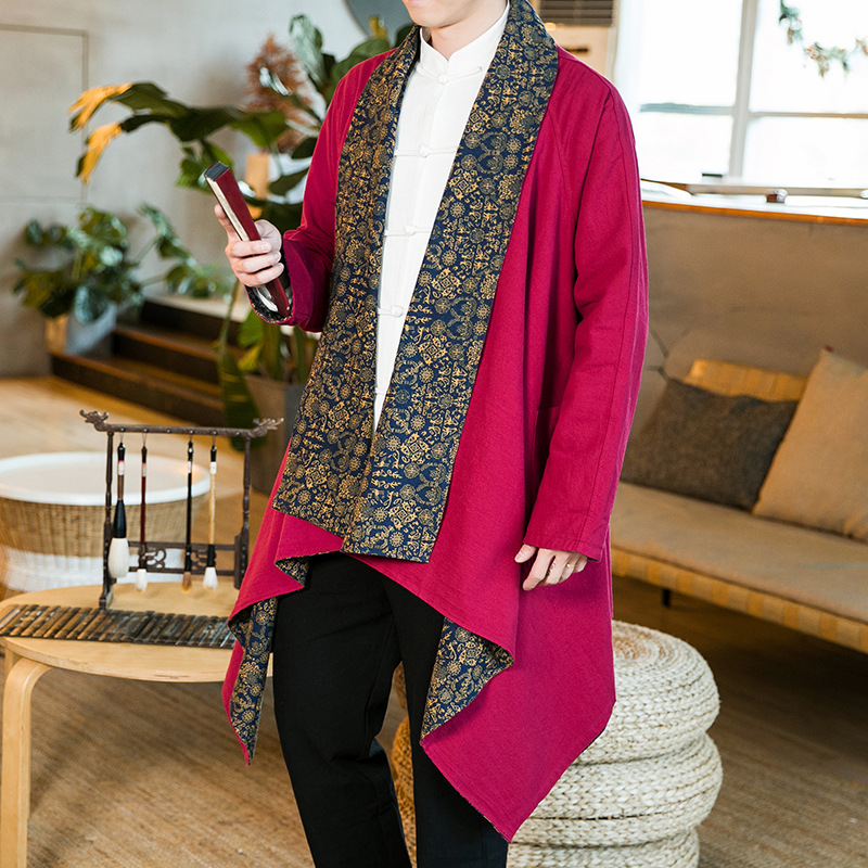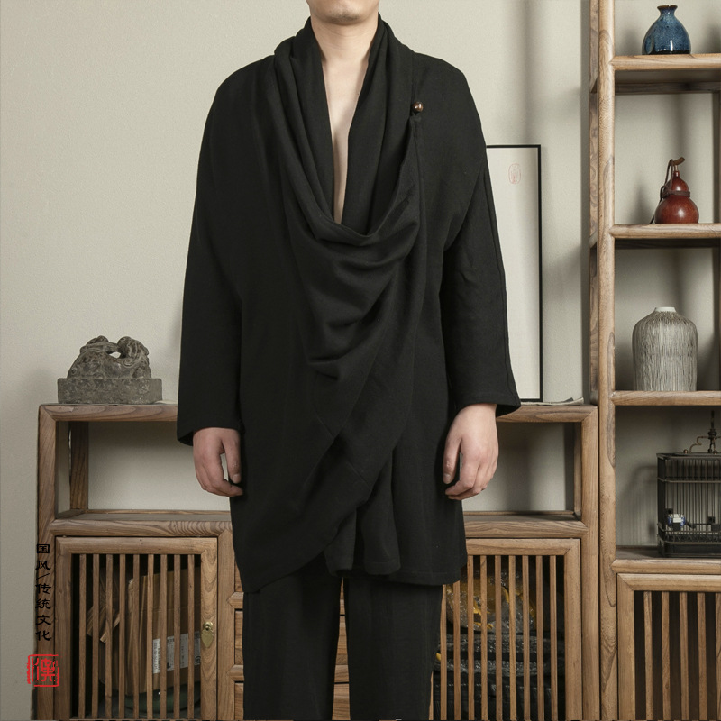 Cod 17秋の中国風男性レトロなマント中国式改良漢服民族風禅服居士服ロングシャツ男