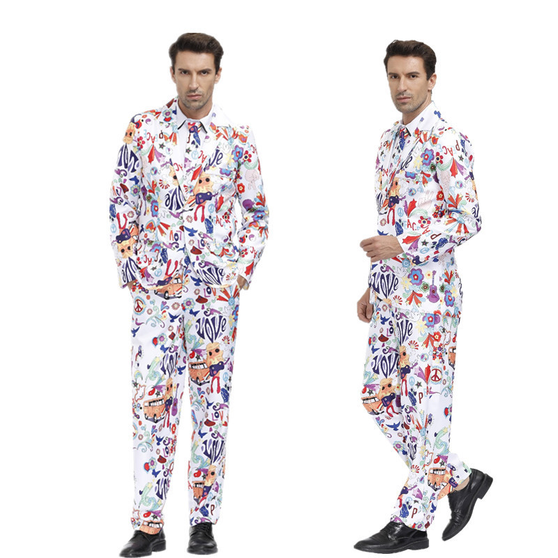 メーカー直販メンズ個性祭りパーティースーツ-LOVEメンズ花柄スーツ舞台演出歌手服