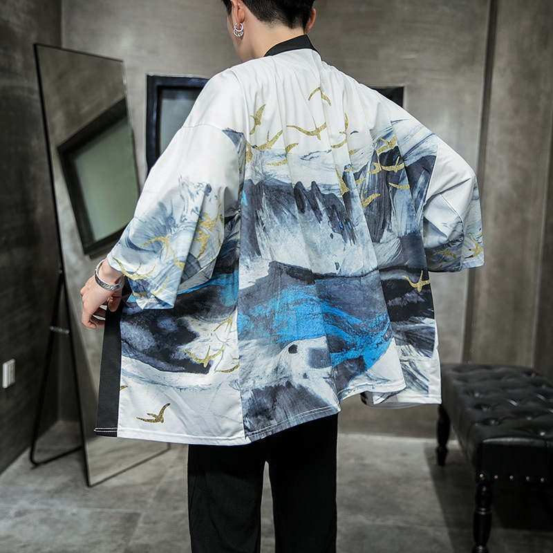 2024夏の新型中国風メンズ白鳥墨龍漢服カーディガン