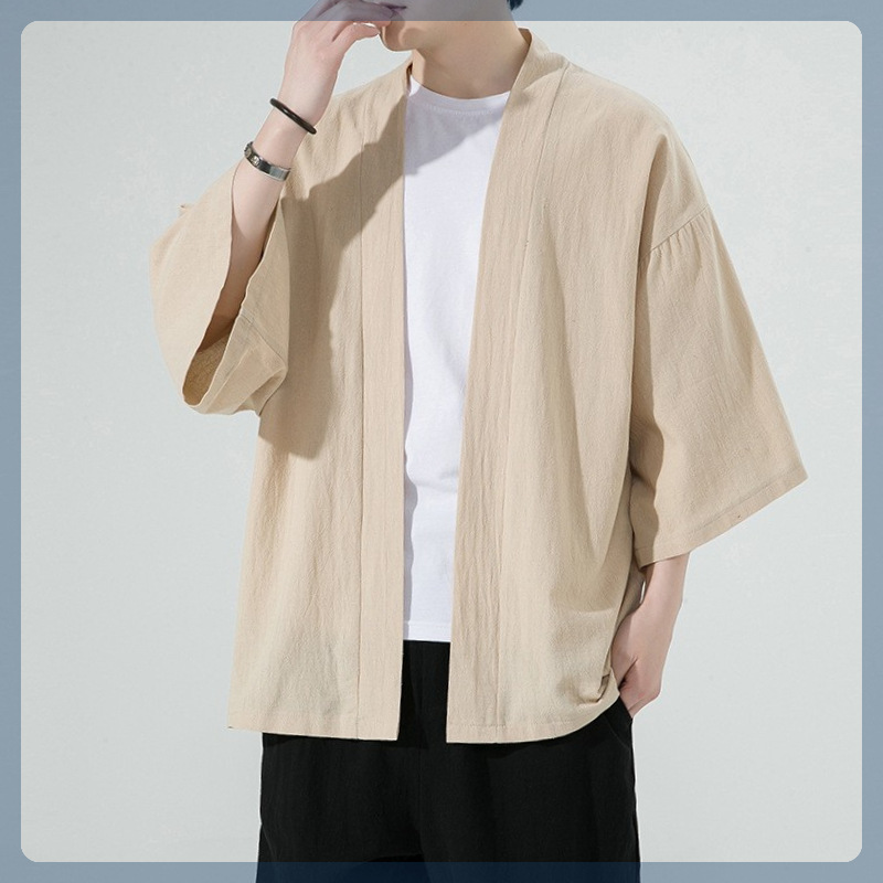 中国風メンズ夏道着カーディガン薄手着物七分袖日焼け止め服ゆったり日系薄手コート汉服