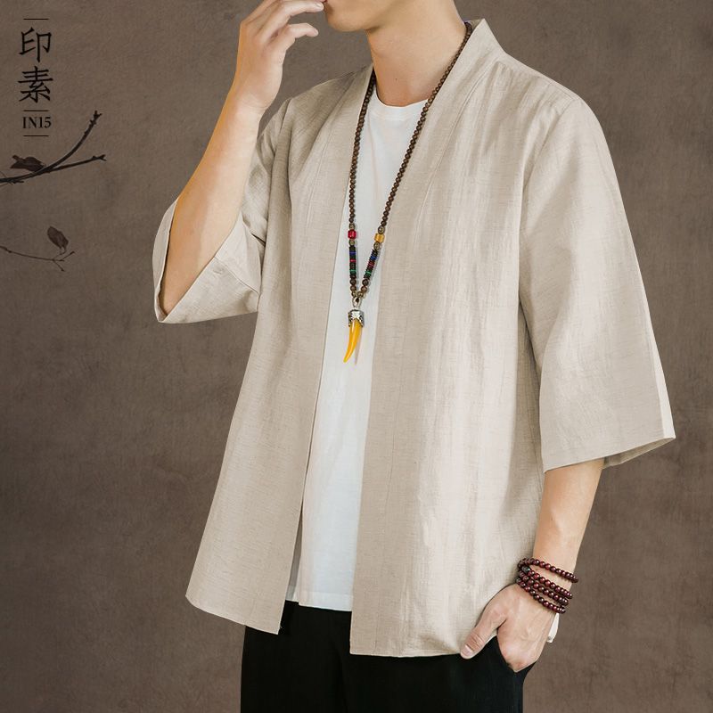 春夏の新型中国風道服七分袖漢服男性上着禅意居士服古風茶服綿麻外