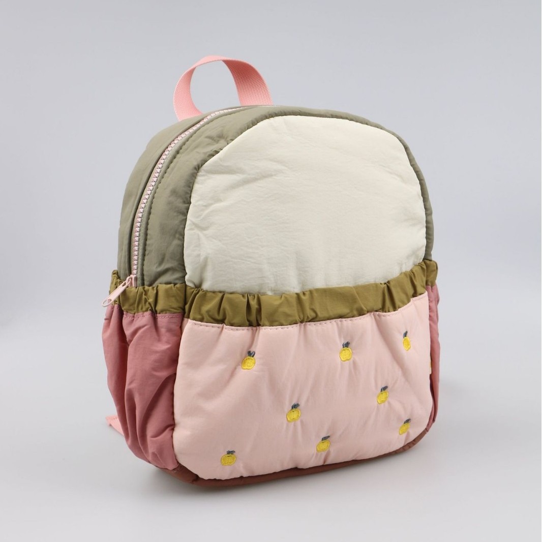 子供用バックパックカラーブロックかわいいリンゴ刺繍幼稚園スクールバッグ軽量旅行バックパック