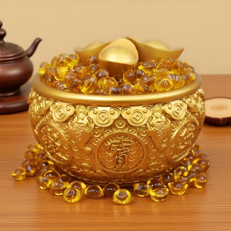 純銅聚宝盆純黄銅置物招集中実客玄関財事務室装飾黄銅米かめ貯金箱