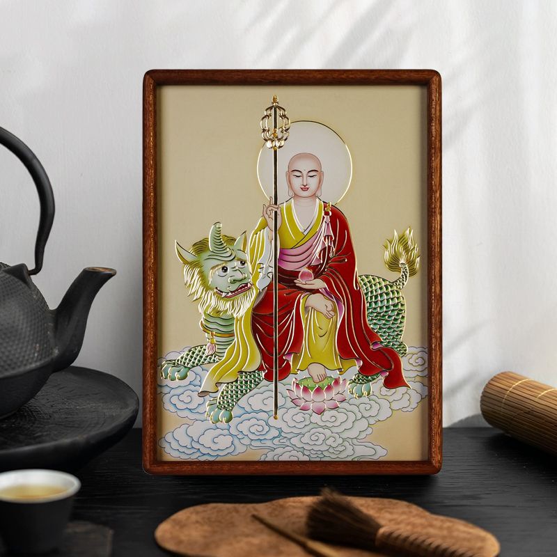 お地蔵の王菩薩の銅の彫刻のデスクトップの置物の手作りの彫刻禅の意味の仏像の現代装飾画の家庭の置物