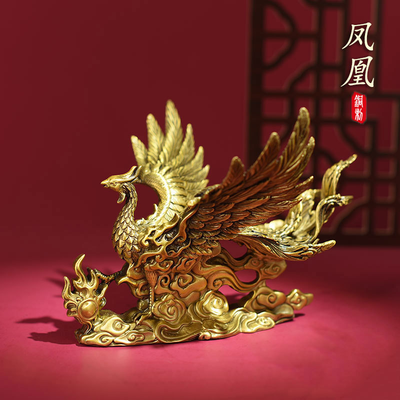 銅鳳凰装飾品龍と鳳凰の幸運の工芸品リビングルーム寝室鳳凰マスコットオフィスウェディングギフト鳳凰の冠