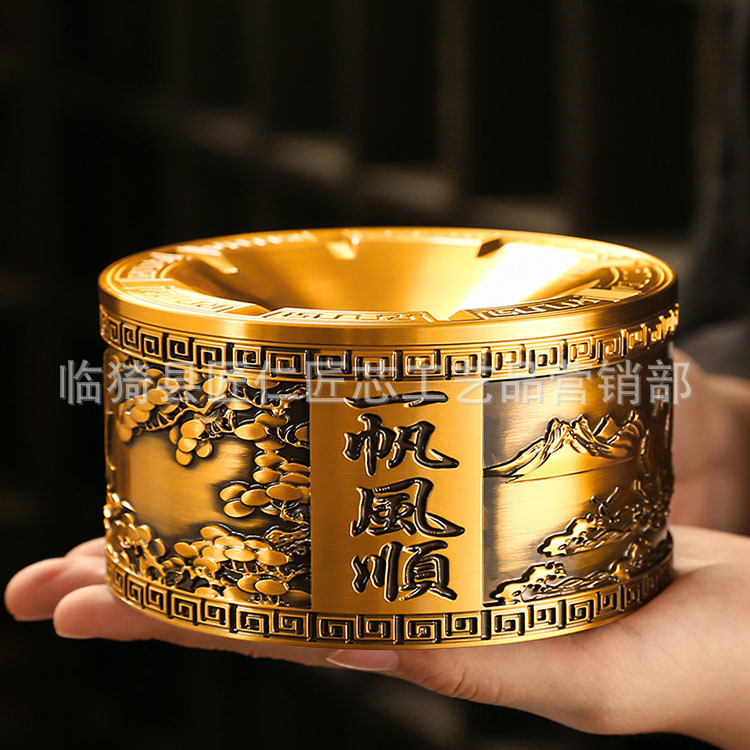 順風満帆黄銅灰皿蓋付き個性的なファッションハイエンドビジネスリビングデスクトップ飛灰防止大型灰皿