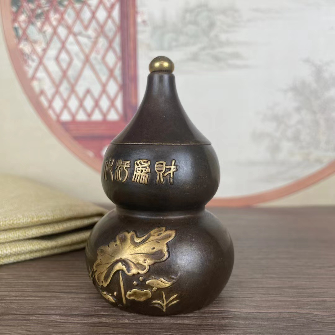 蓋付きの古い銅器の瓢箪の小さい置物の卸売りの竜紋の黄銅の瓢箪の家庭の事務の銅器の置物のメーカー