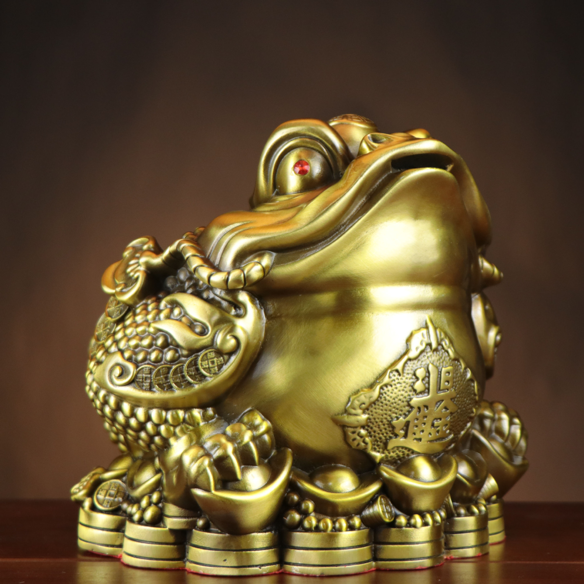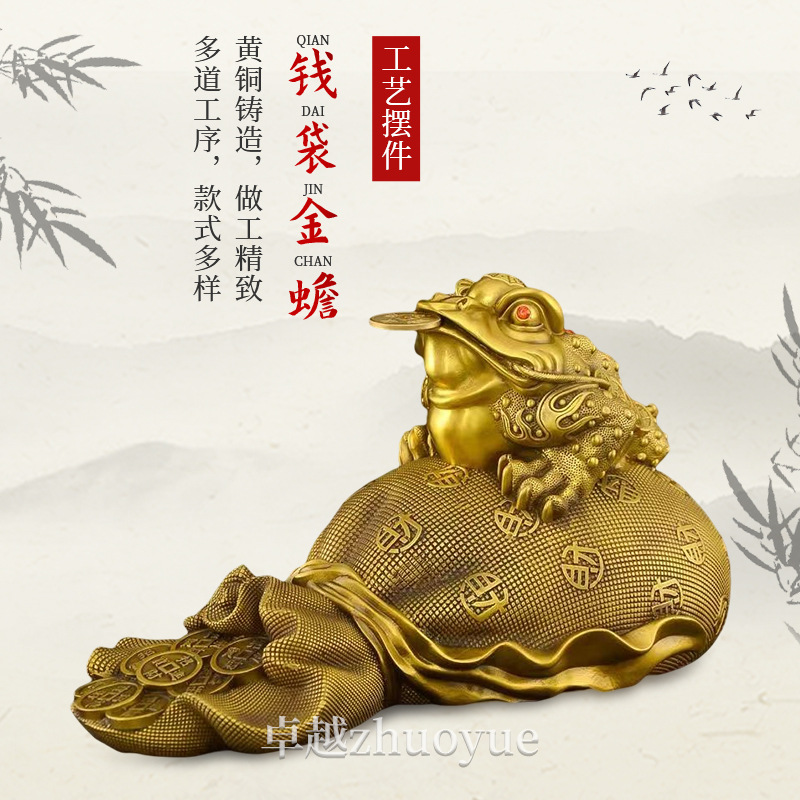 金ヒキガエル招財置物真鍮三足金蝉店開業プレゼント銭袋ヒキガエル客間装飾品銅金ヒキガエル