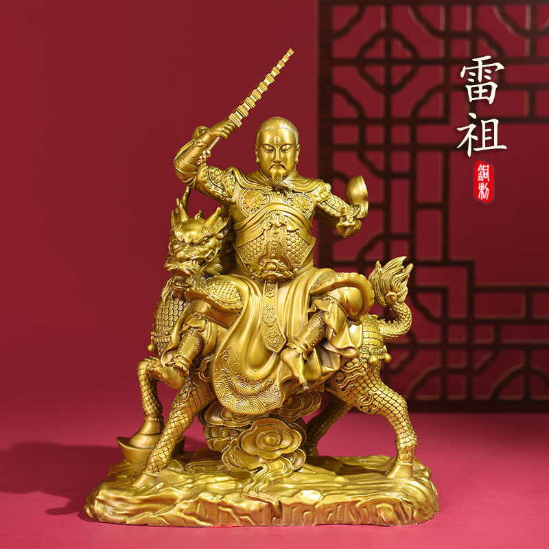 真鍮製九天英源雷神天尊像、家庭用雷祖南極長寿皇帝デスクトップ装飾品