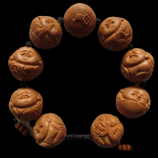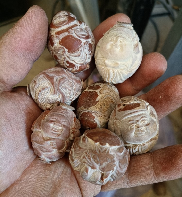 オリーブの核の三通は弥勒笑仏を飾っています。