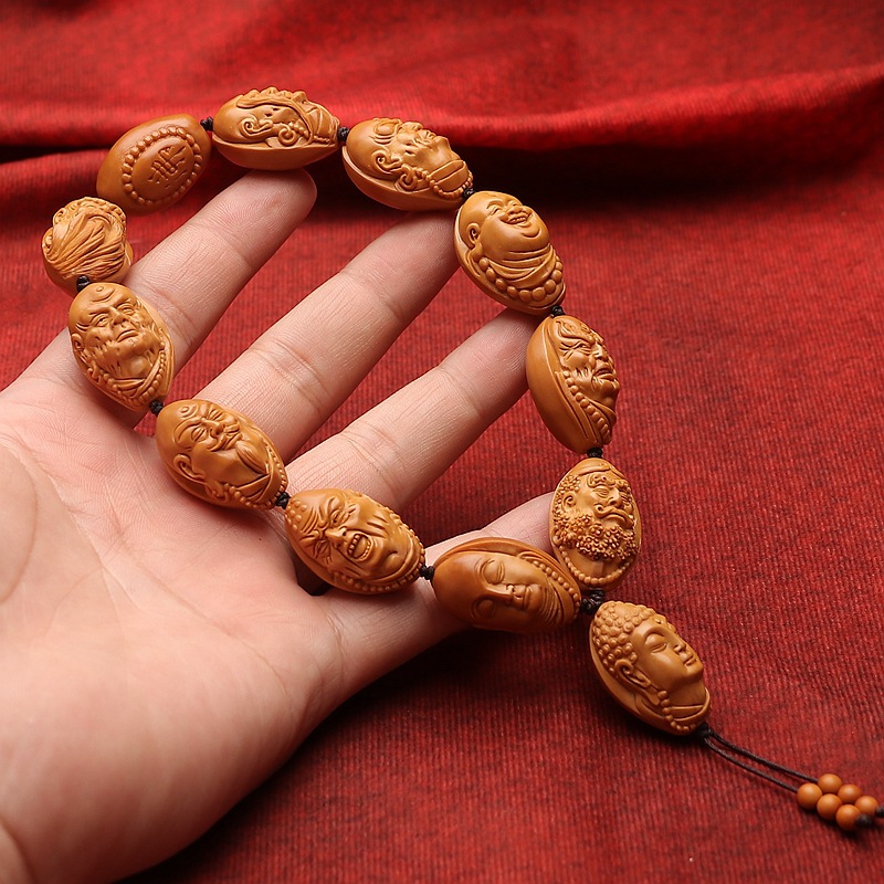 新品オリーブ核手彫り108羅漢礼拝仏手飾り核彫十八羅漢弥勒仏文玩