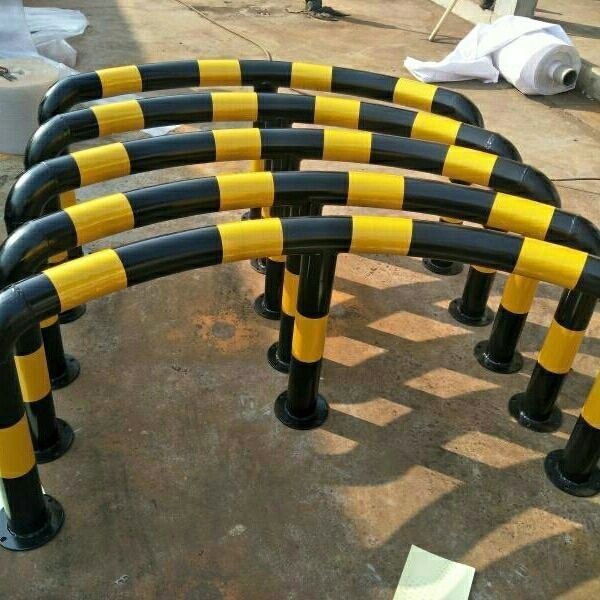 ガソリンスタンド用曲線型衝突防止ガードレール、衝突防止鋼管ガードレール、ガレージ、住宅街駐車場、ガソリンスタンド用車止め