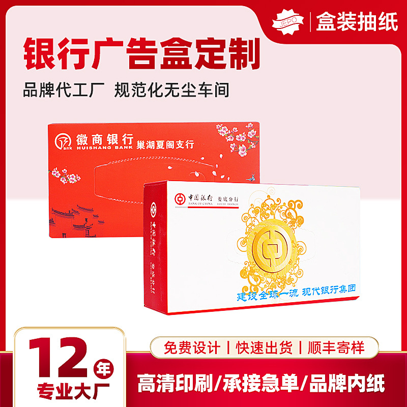 銀行ガソリンスタンドビジネス広告箱入りペーパータオル卸売メーカー無料デザイン印刷ロゴペーパータオルログ