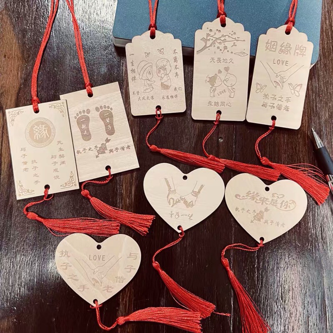 木製祈願札、願い札、卸売、景勝地、カップル札、印刷・彫刻・カラー印刷・ロゴ装飾・刻印可能