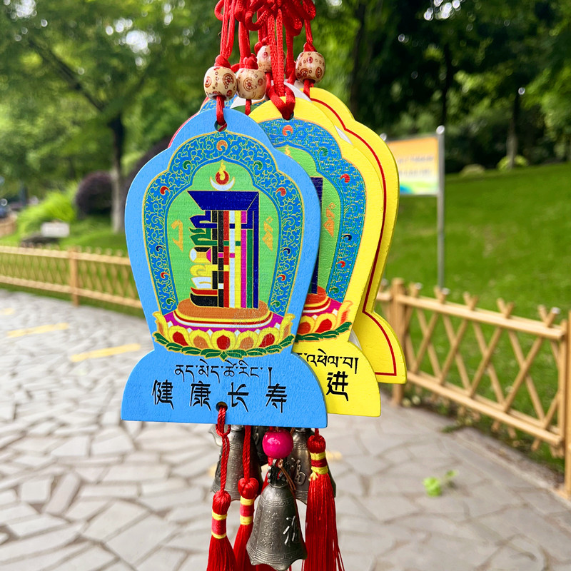 チベット族の風格の鈴の項の木製の願い事の札は木の札の愛の札の装飾のブランドの観光工芸品を祈って印刷することができます。