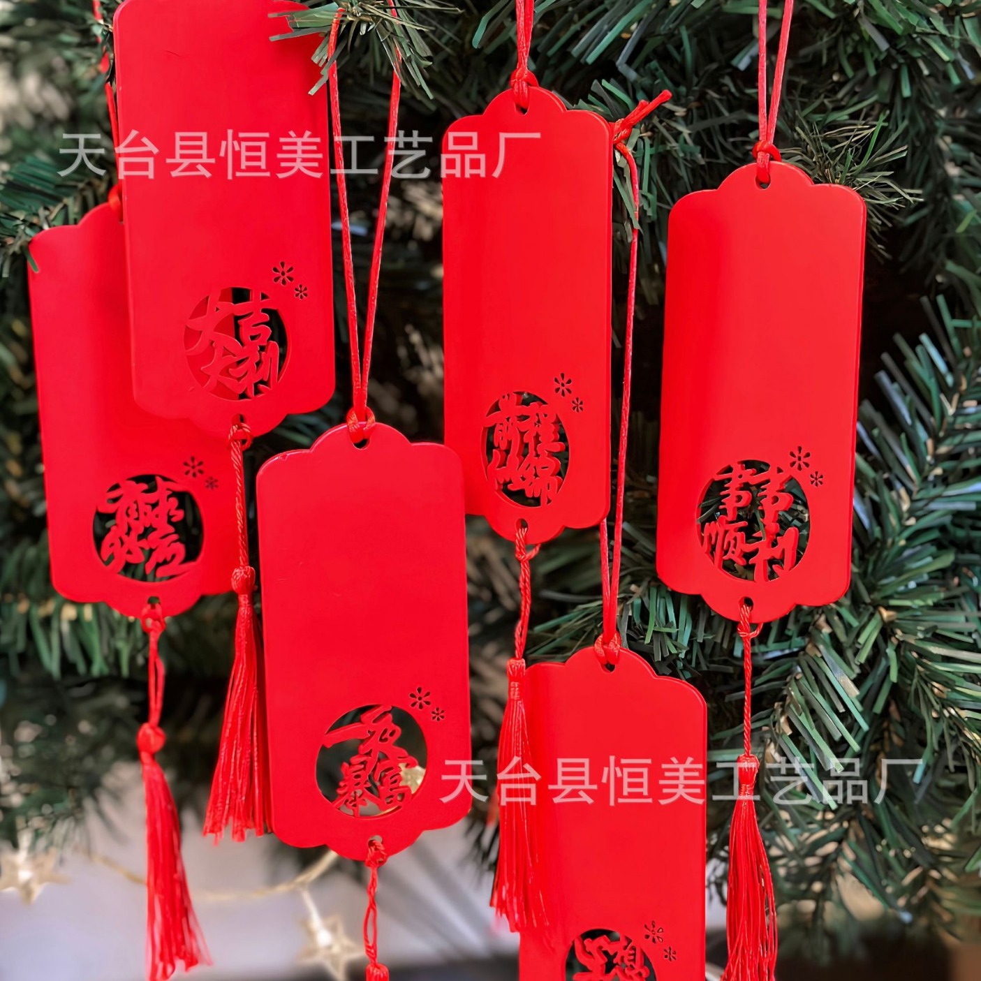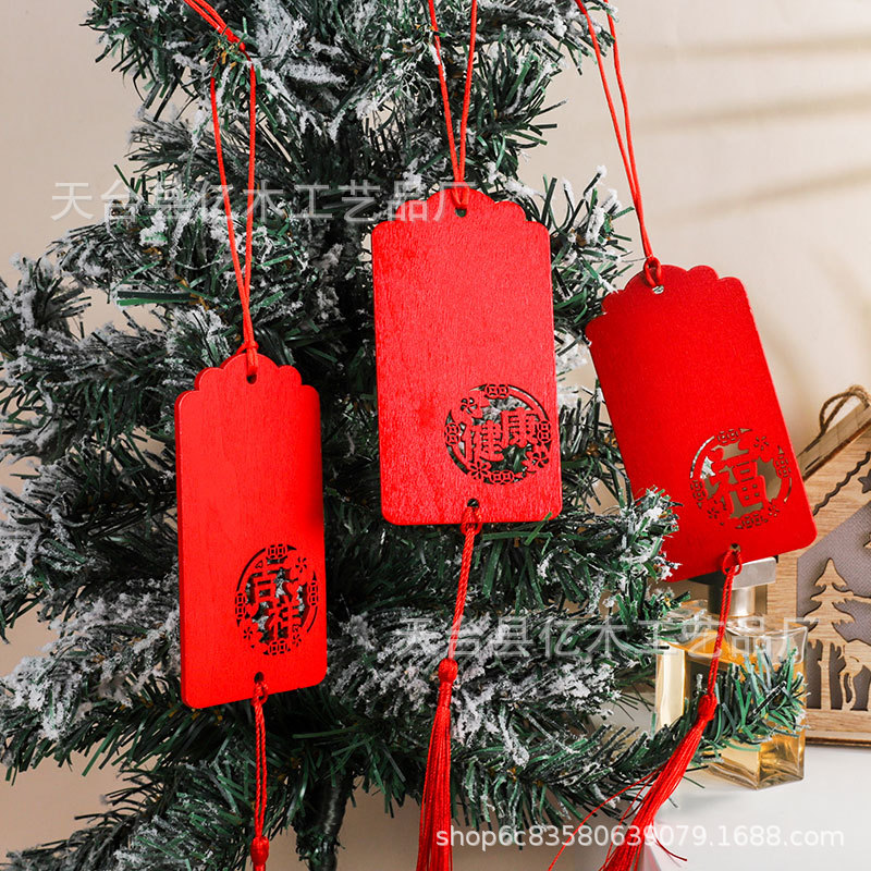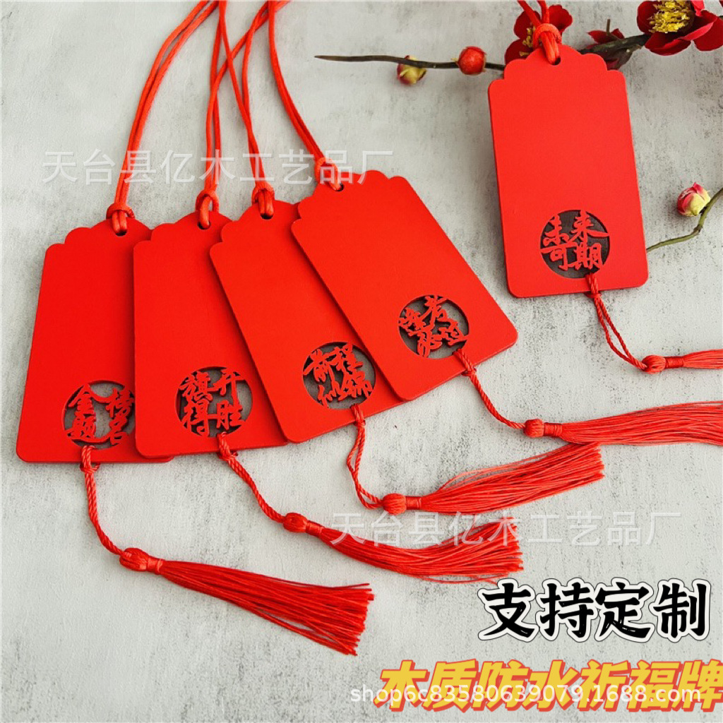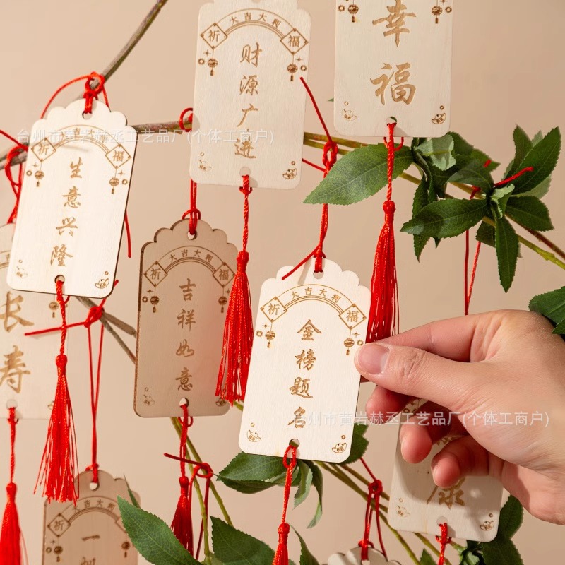 木製赤い願い札小さなカードタグ新年春祭り元旦装飾祝福メッセージカード手書きカード