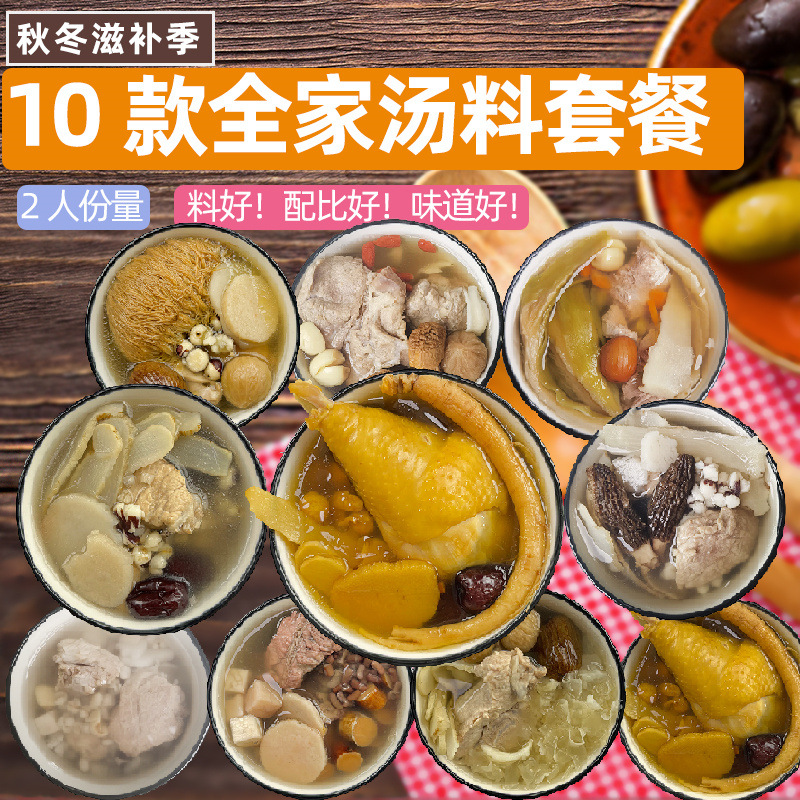 スープの食事師のスープの材料は食材を包んで10包みます。