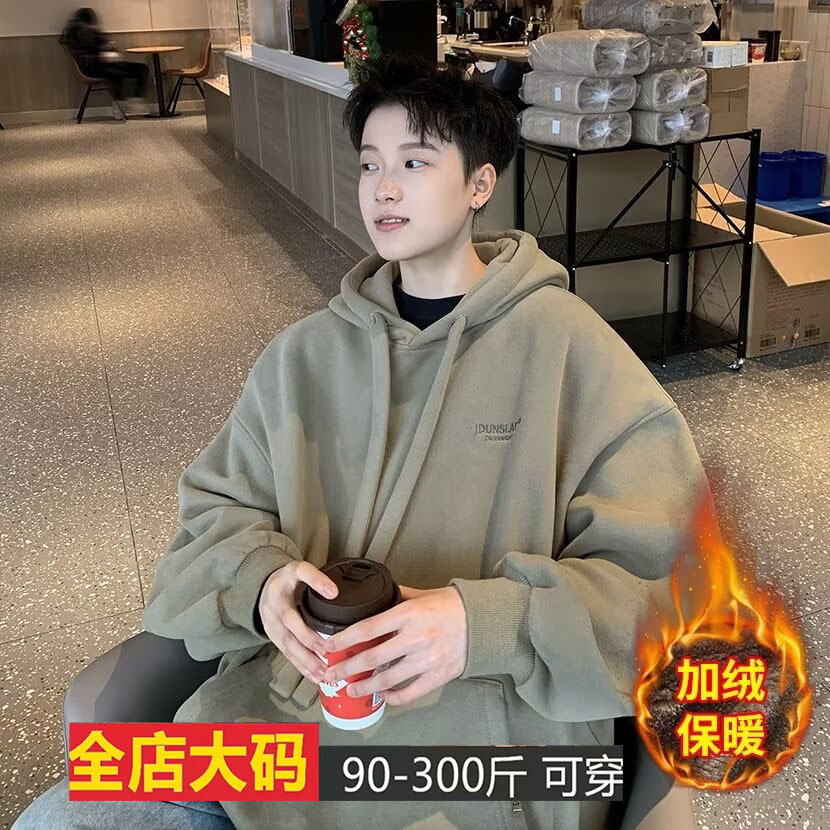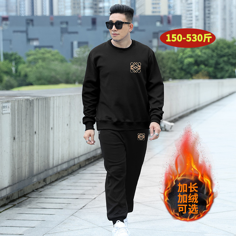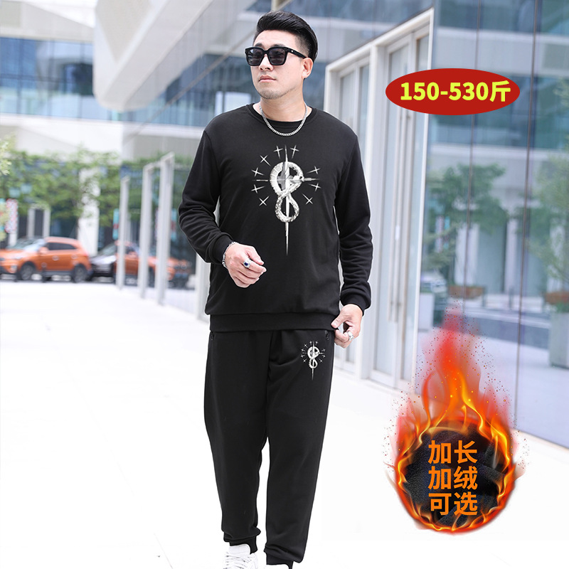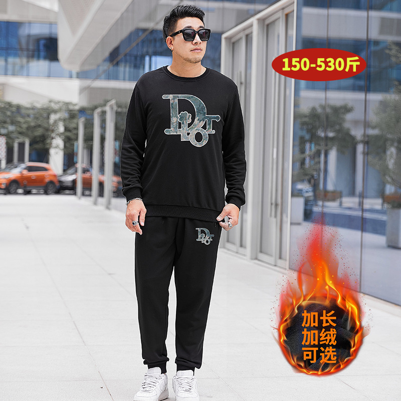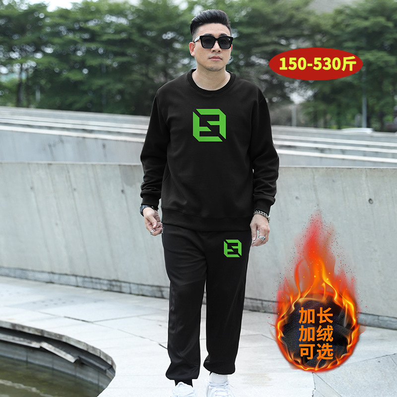 2025ベルベットの大きいサイズのガーディアンの丸首の頭に太った男性服の太った男のゆるいファッションは、300を着ることができます