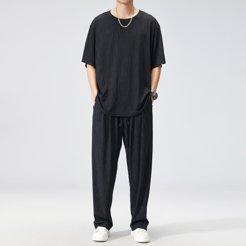 大きいサイズを大きくして、太っています。中国風男性の夏のデブ半袖セットの薄いタイプの中国式男性服の復古風です。