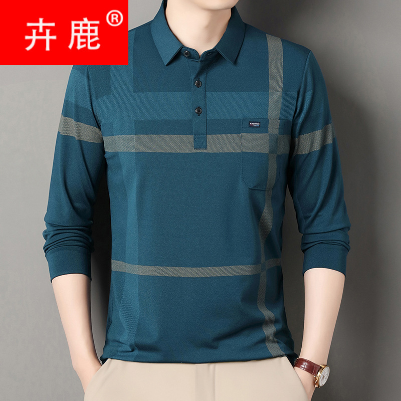 春秋新作中年メンズ折り襟長袖カジュアルポロシャツメンズ真 � � ポケット上着お父さん服tシャツ男