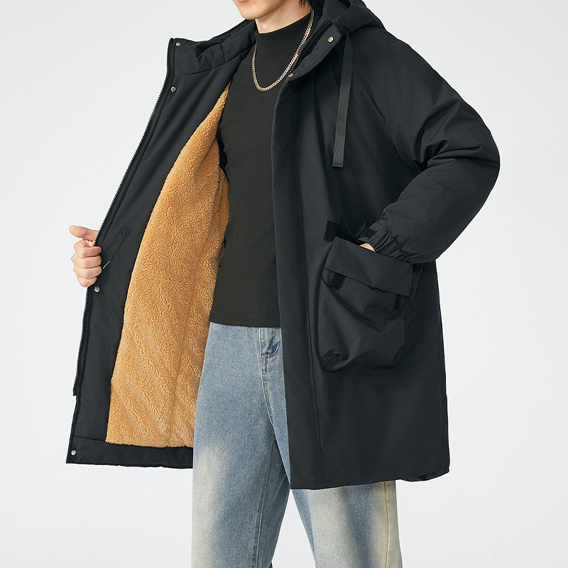XL-6XLの特大サイズの中長タイプの綿服男性は冬にベルベットを厚くしてゆったりした大きいサイズを大きくして太った人を増やす