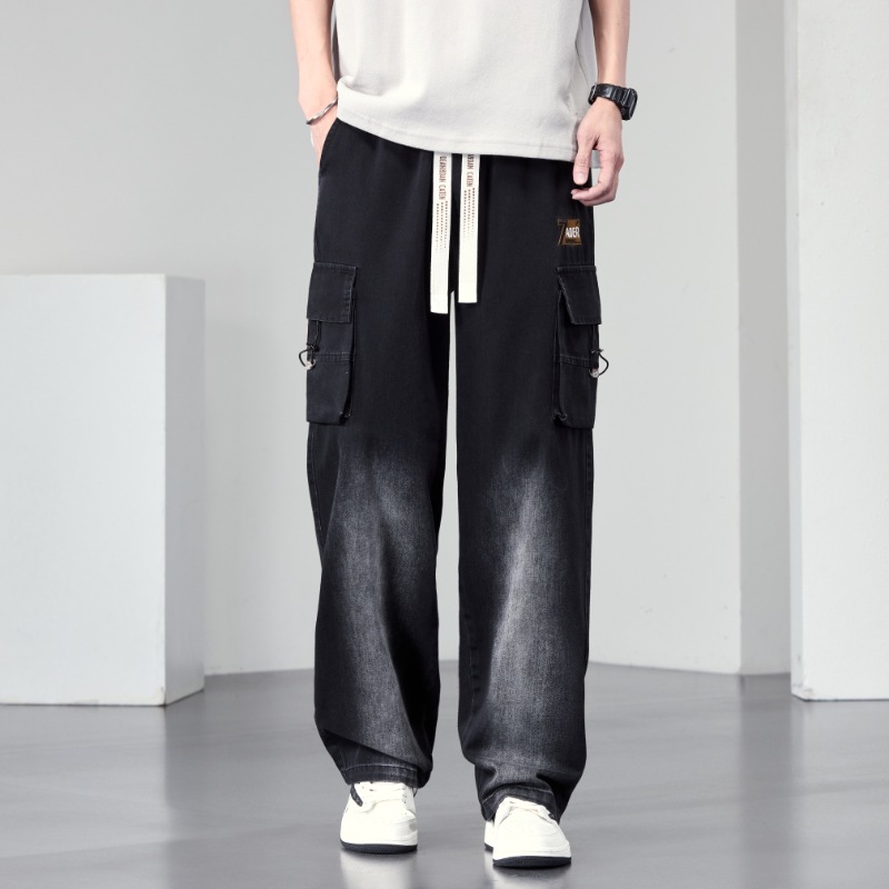 デブの大きいサイズの工装のズボンの男性の秋冬の新型のファッションのブランドのゆったりしているストレートなズボンの香港の風の多いポケットとベルベットのカジュアルなズボン