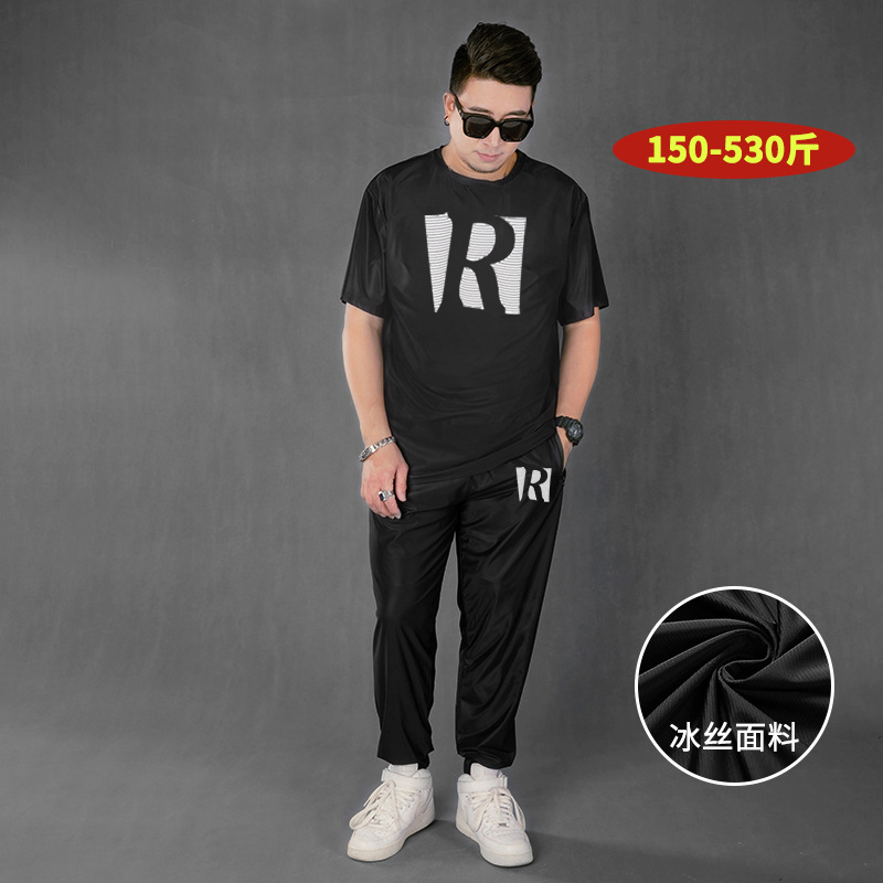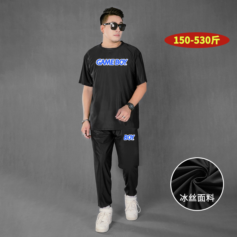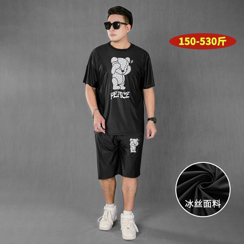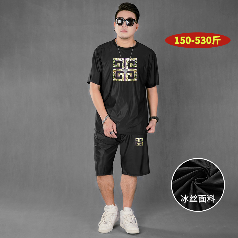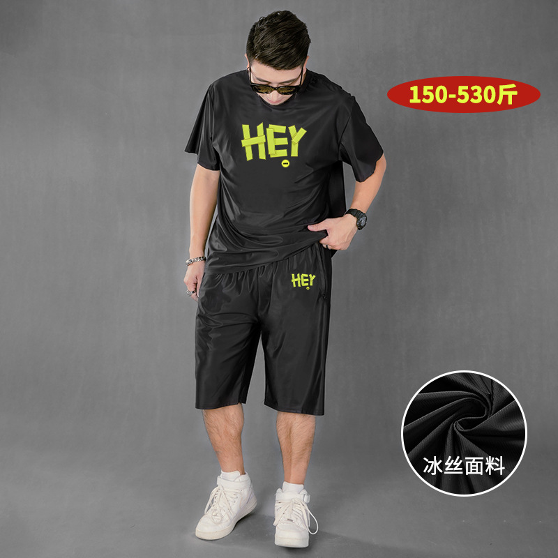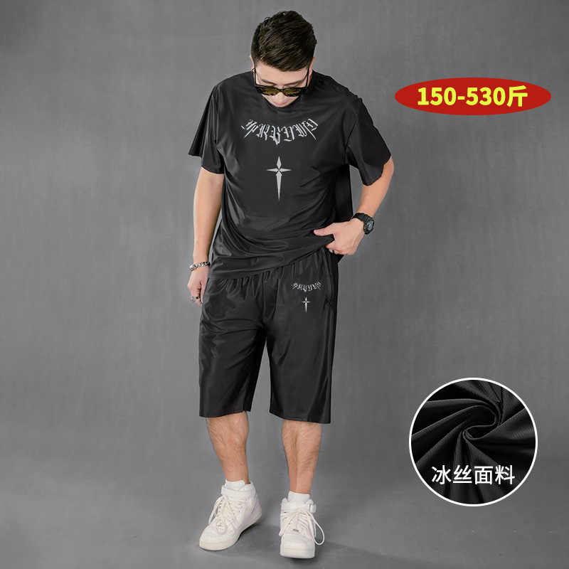 アイスシルクベストスポーツスーツメンズ夏バスケットボールユニフォーム太った人用プラスサイズショートパンツランニング150kg通気性