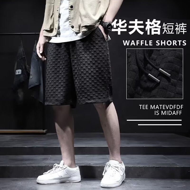 ゆったりしたワッフル五分ズボンの男性の大きいサイズのデブの外に短いズボンの男性の薄いタイプのカジュアルなバスケットボールのズボンの夏のファッションを着ます。