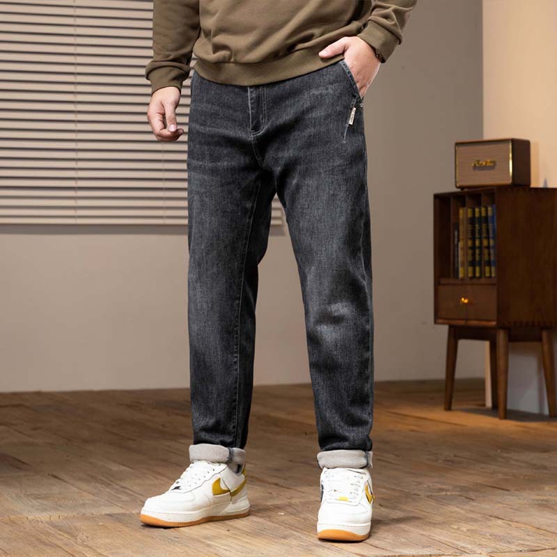 8607 | 大きいサイズの男性服秋冬新商品弾力ジーンズ男ゆるいレトロ百合カジュアルストレート長ズボン