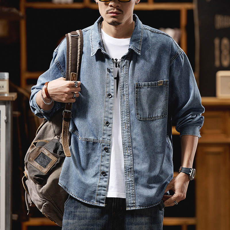 807 | ビッグサイズの男性服春の新商品日系レトロなカウボーイシャツ男性ゆるいファッションシャツ男性