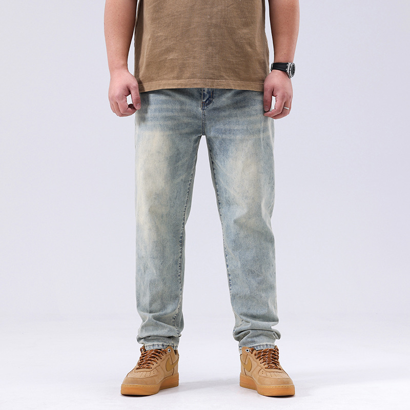 Z0306大サイズの下に300斤秋の新製品の復古風重工が水洗いして古い磨かれたゆるいジーンズ男を作る