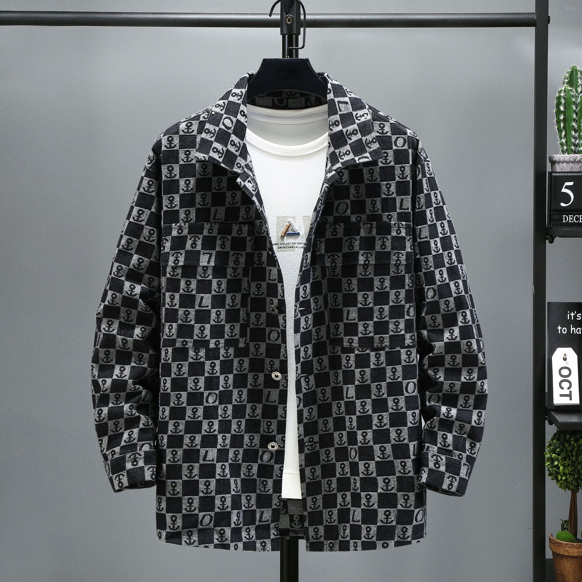 小香風コートの男性サイズの春と秋のゆったりとした肥育は青少年の千鳥格子の太った男性のジャケットを大きくします。