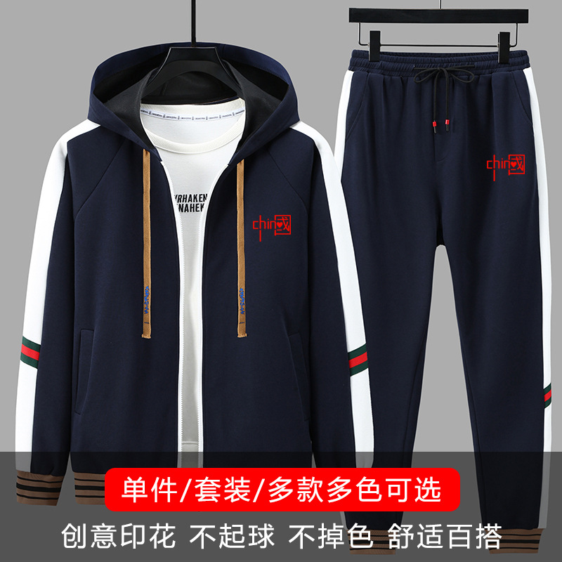 太ったプラスサイズのスーツの男性春秋タイプのガードルのズボンのデブの運動のレジャーの潮流の格好いい秋の服の2つのセット