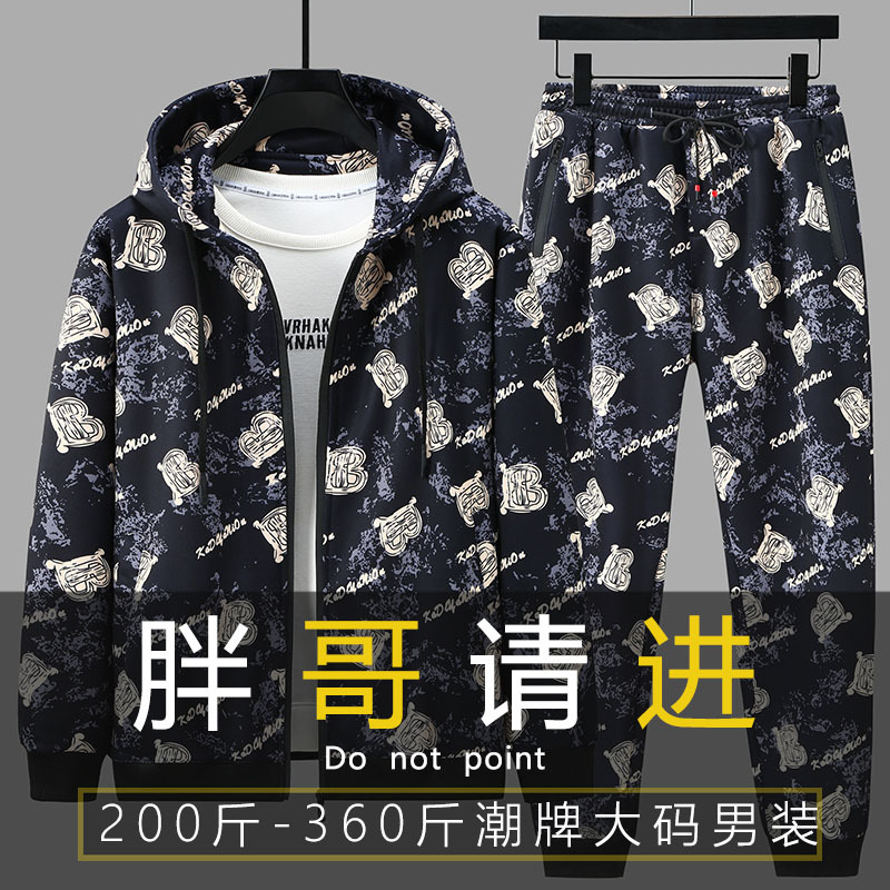360斤のデブの服のスーツの男性の春秋の新型は太って大きいサイズのファッションの太っている人のレジャーのスポーツウェアの2をプラスします。