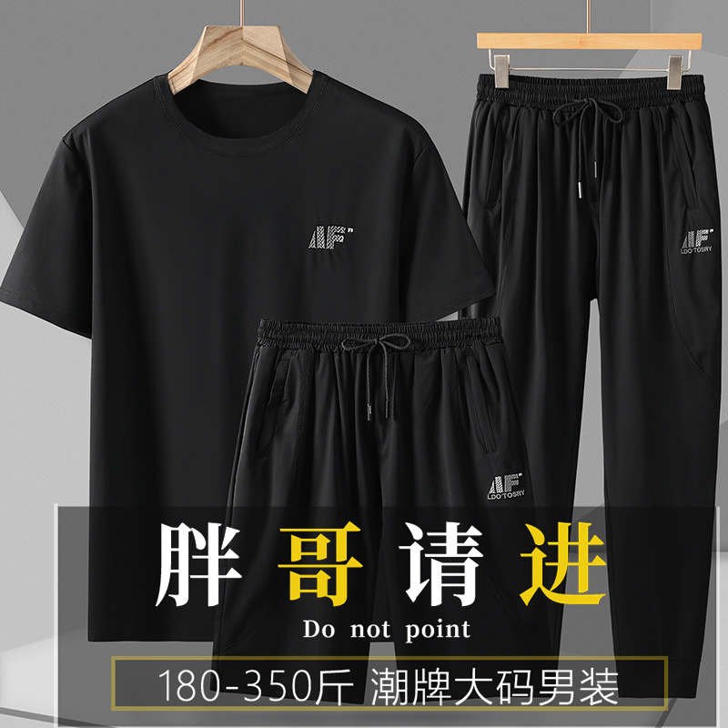 2023夏の新型速乾氷糸男性3点セットの太った人の潮牌超太った人が太って2339を大きくした