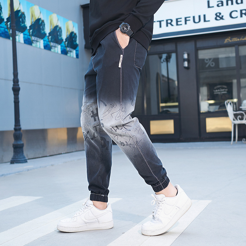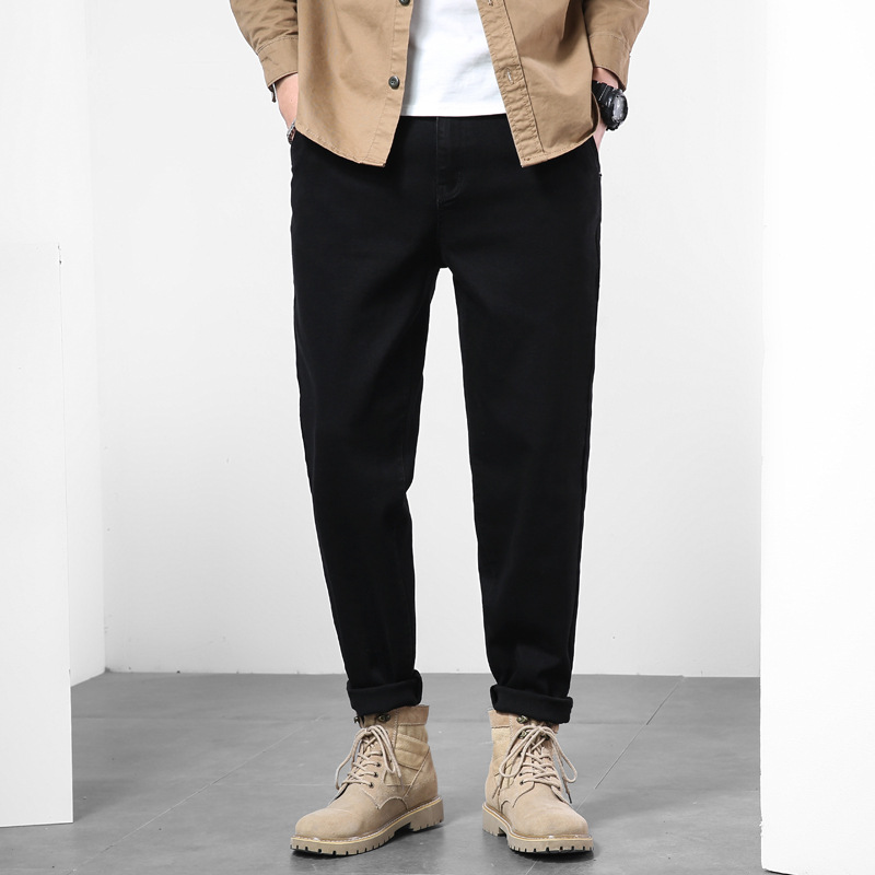 Z613 | 大きいサイズのメンズジーンズの黒いハーレムの小さい足のズボンはゆったりしています。